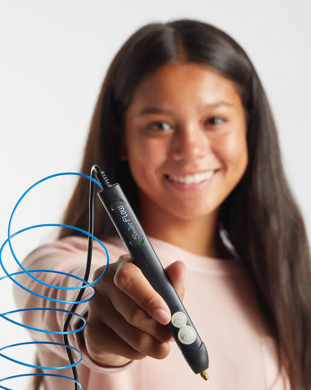 The 3Doodler Flow is the ultimate 3D printing pen for creators ages 14+. Perfect for anyone with a spark of imagination, it’s ready to turn your ideas into reality and inspire your life. Designed for seamless creativity, the Flow lets you break free from the page and explore new creative dimensions. Its spool-based system delivers a constant filament flow, ensuring uninterrupted artistry without the hassle of frequent changes.